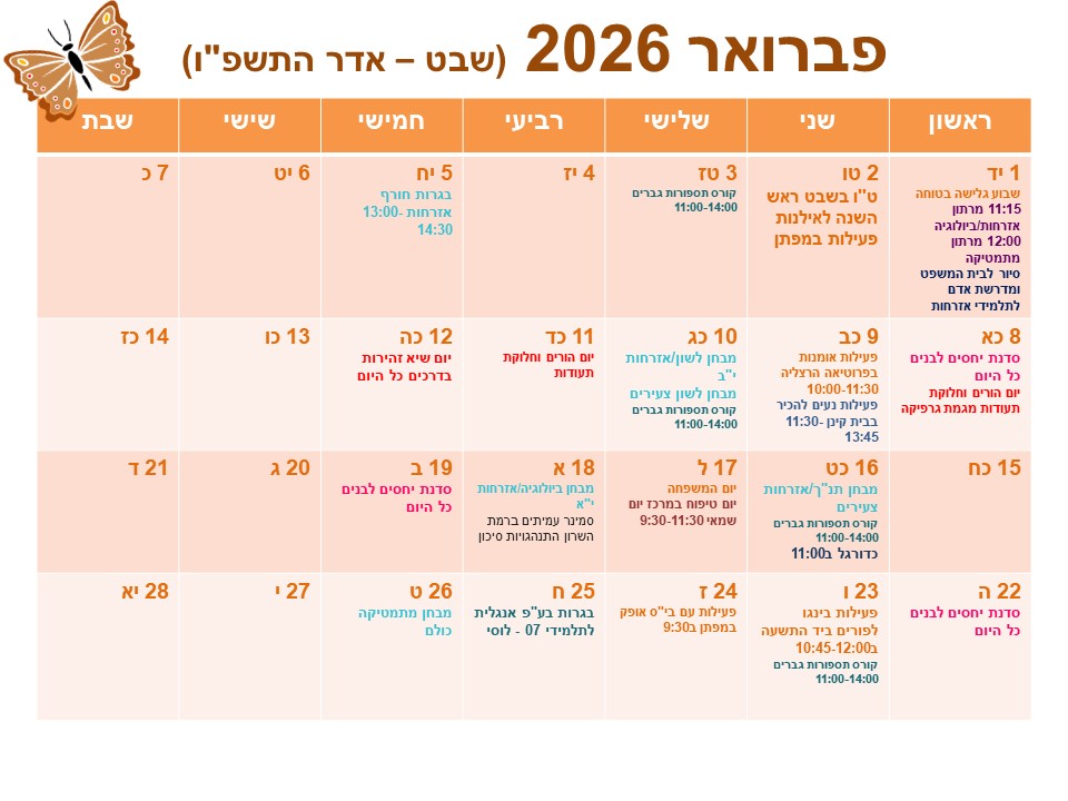 לו"ז פברואר תשפ"ו