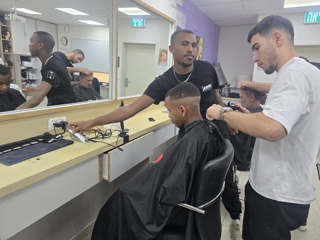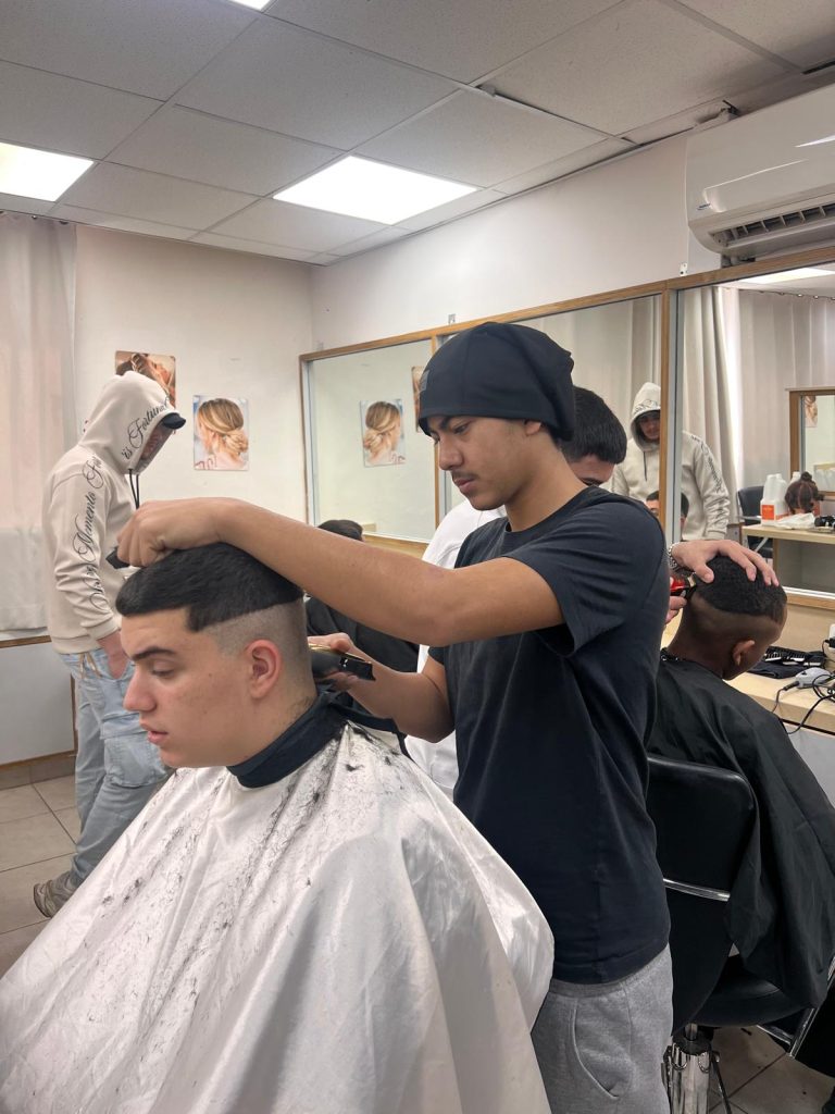 תלמידי מגמת עיצוב שיער עוברים קורס של תספורות גברים פעם בשבוע
